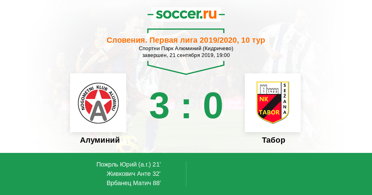 Протокол матча Алуминий против Табор