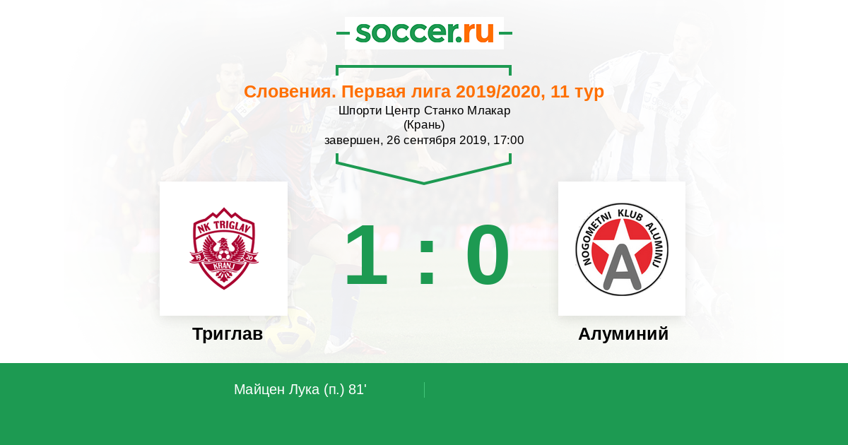 Протокол матча Триглав против Алуминий
