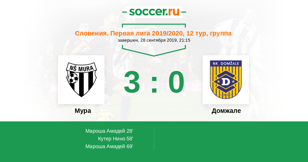 Протокол матча Мура против Домжале