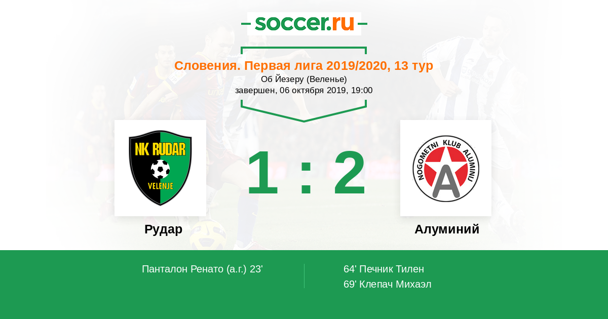 Протокол матча Рудар против Алуминий