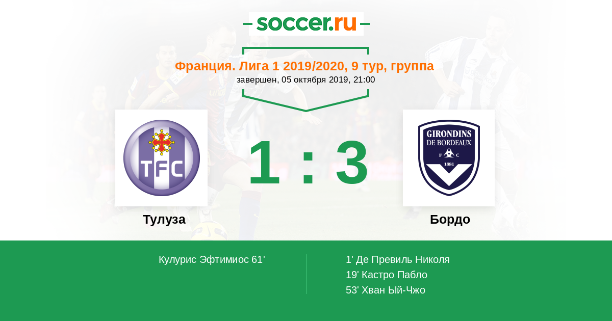 19' (0:2) Кастро Пабло (3) (Де Превиль Николя (12))