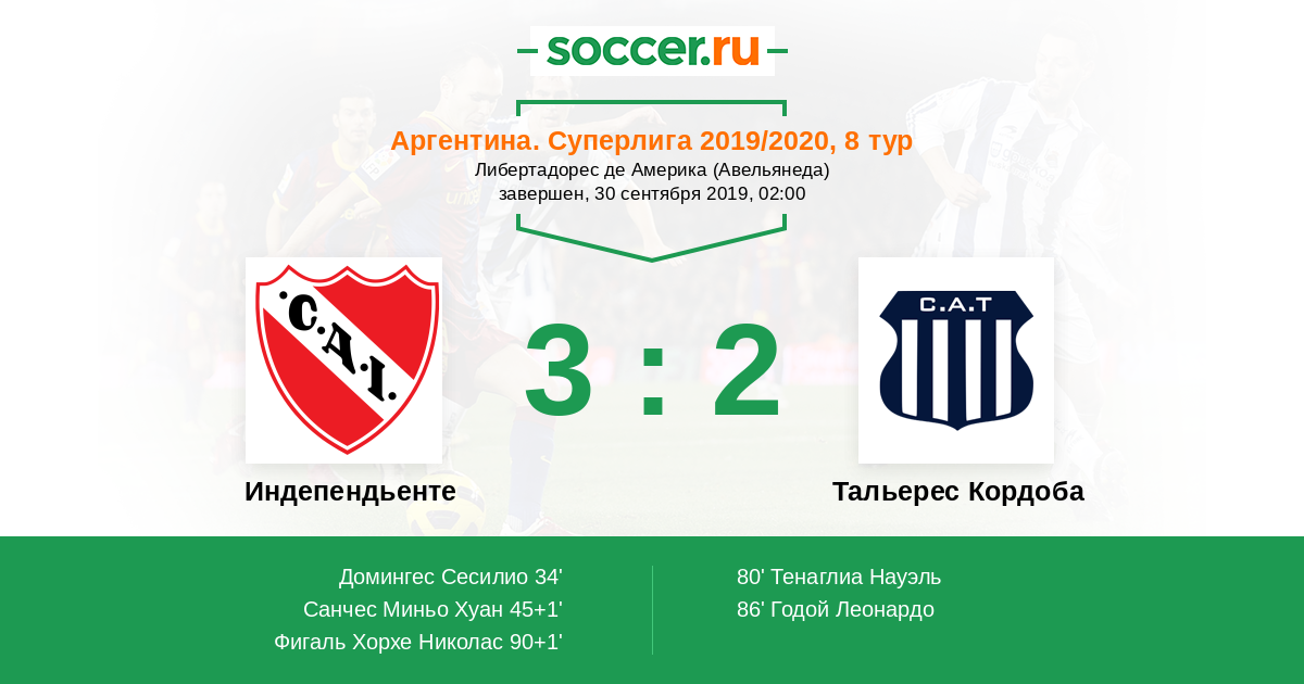 Протокол матча Индепендьенте против Тальерес Кордоба