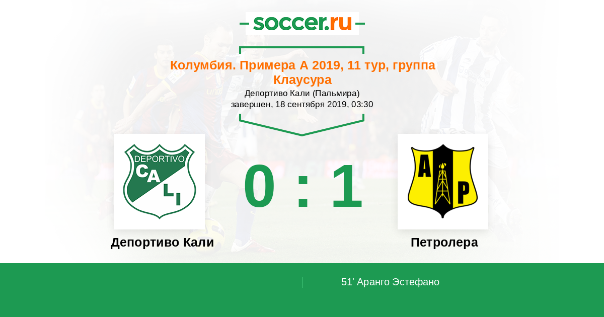 Протокол матча Депортиво Кали против Петролера