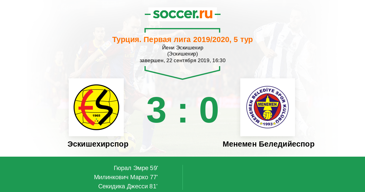 Протокол матча Эскишехирспор против Менемен Беледийеспор