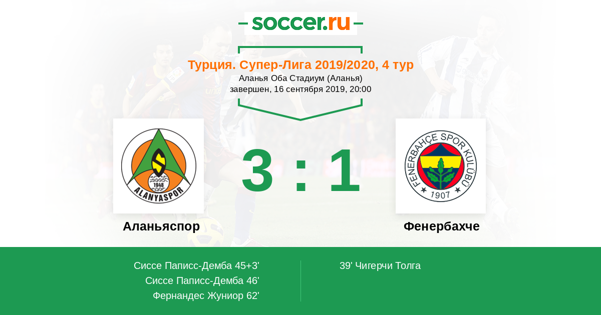 Протокол матча Аланьяспор против Фенербахче