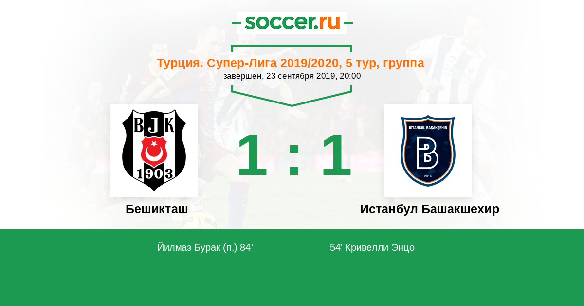 Протокол матча Бешикташ против Истанбул Башакшехир