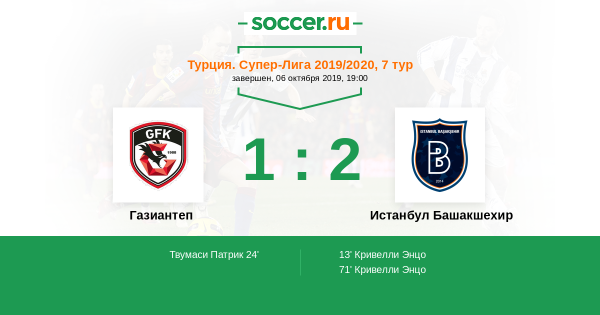Протокол матча Газиантеп против Истанбул Башакшехир