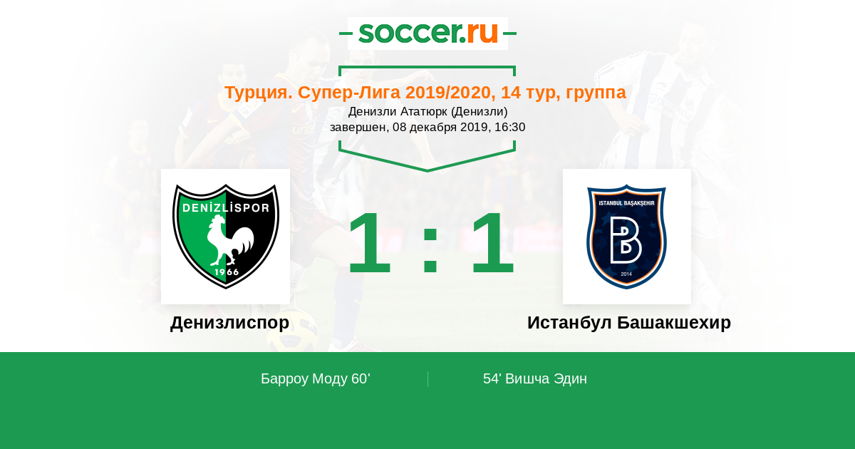 Протокол матча Денизлиспор против Истанбул Башакшехир
