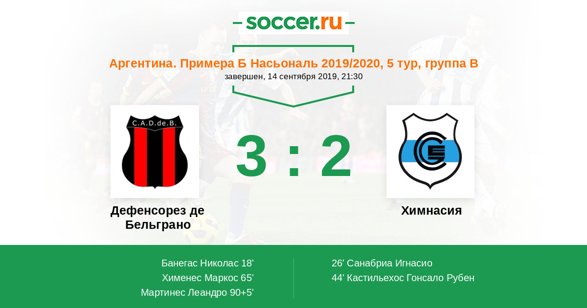 Протокол матча Дефенсорез де Бельграно против Химнасия