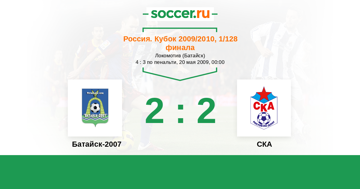 Россия. Вторая лига. Группа 1 28.06.2009 Батайск-2007 Логотип футбольный клуб Батайск-2007 4:1 Логотип футбольный клуб СКА (Ростов-на-Дону) СКА