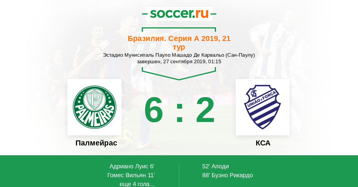 Протокол матча Палмейрас против КСА