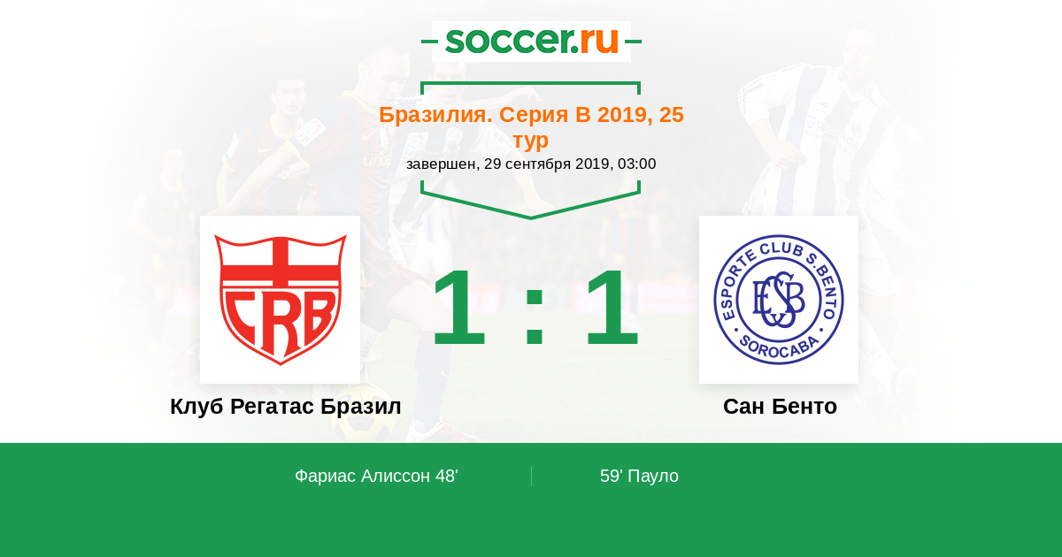 Протокол матча Клуб Регатас Бразил против Сан Бенто