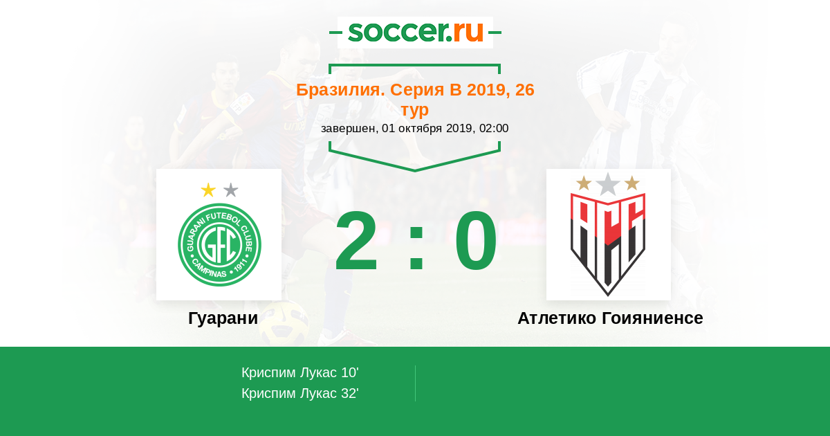 10' (1:0) Криспим Лукас (11) (Луис Густаво (3))