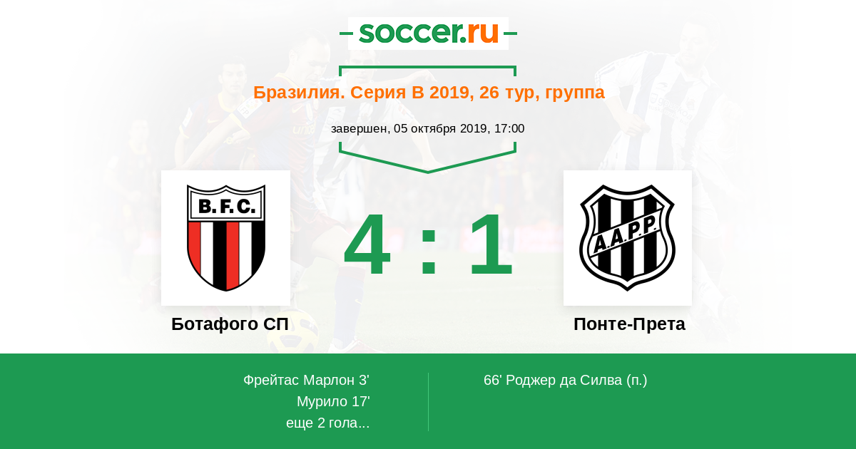 66' (3:1) Роджер да Силва (9)