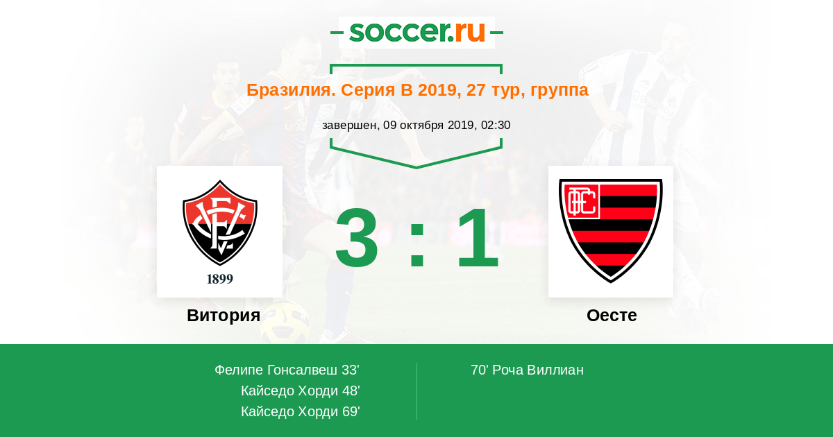 70' (3:1) Роча Виллиан (4) (Алисон (6))