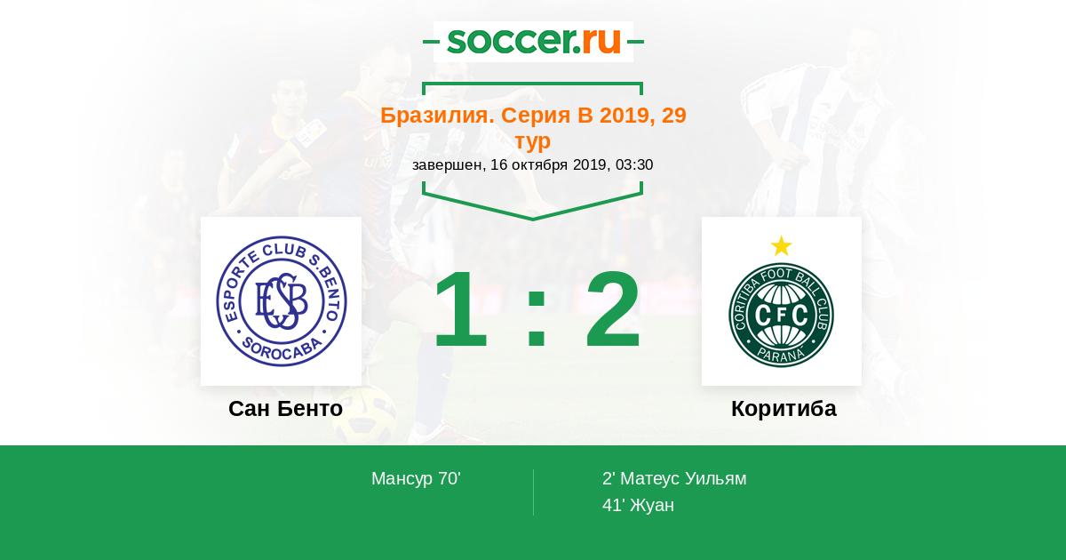 Протокол матча Сан Бенто против Коритиба