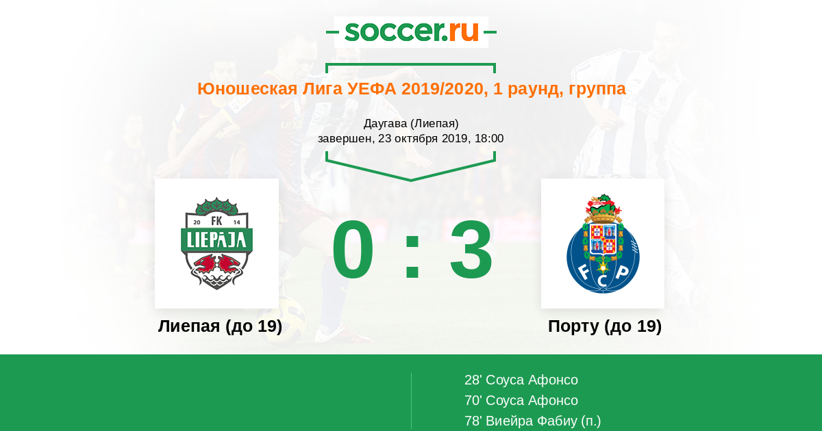 Протокол матча Лиепая (до 19) против Порту (до 19)
