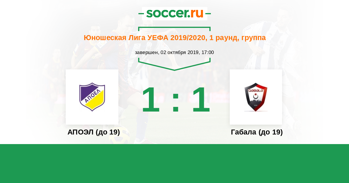 История матча АПОЭЛ (до 19) против Габала (до 19)