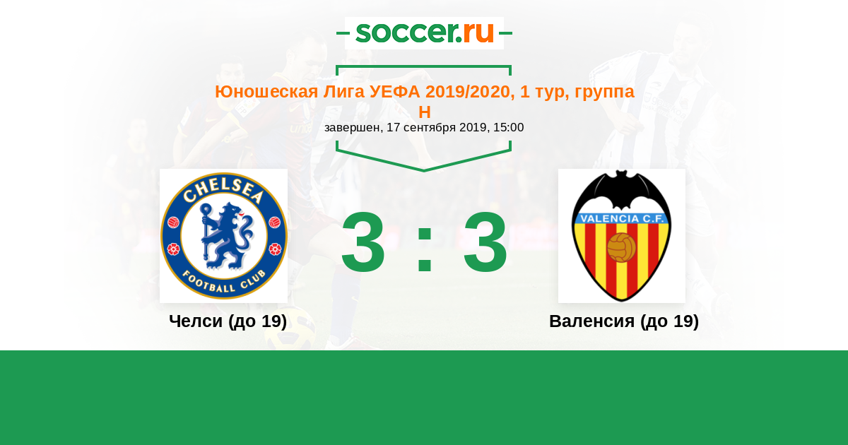 Протокол матча Челси (до 19) против Валенсия (до 19)