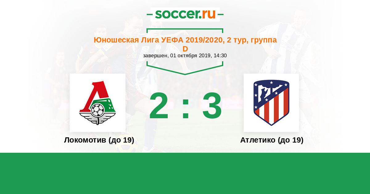 Новости матча Локомотив (до 19) против Атлетико (до 19)