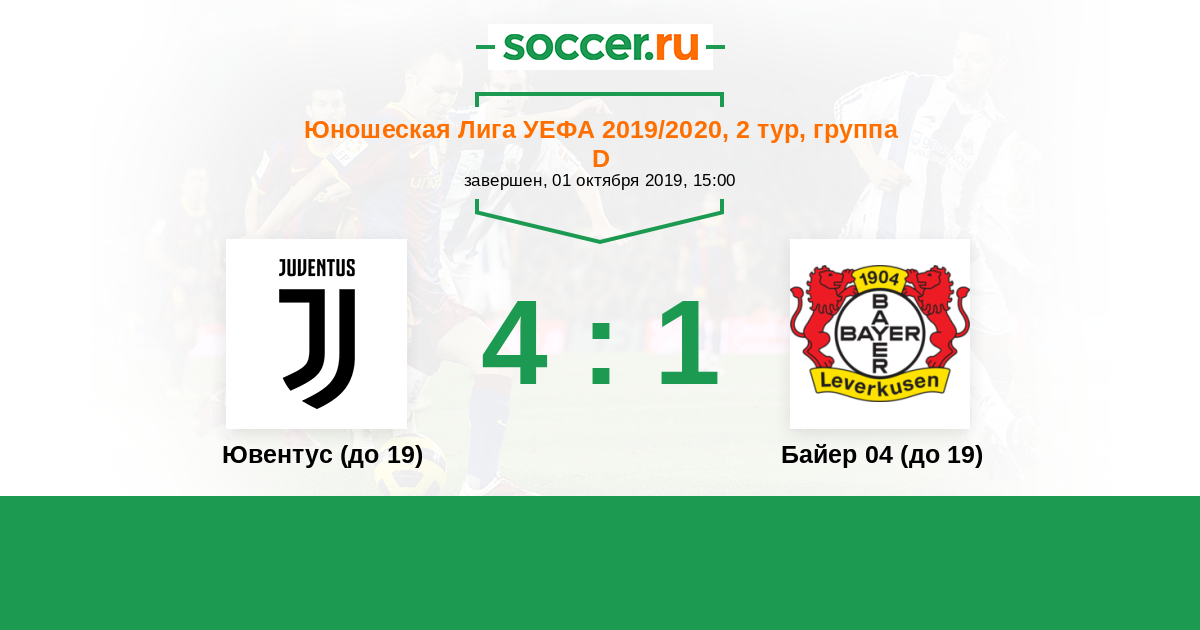Протокол матча Ювентус (до 19) против Байер 04 (до 19)