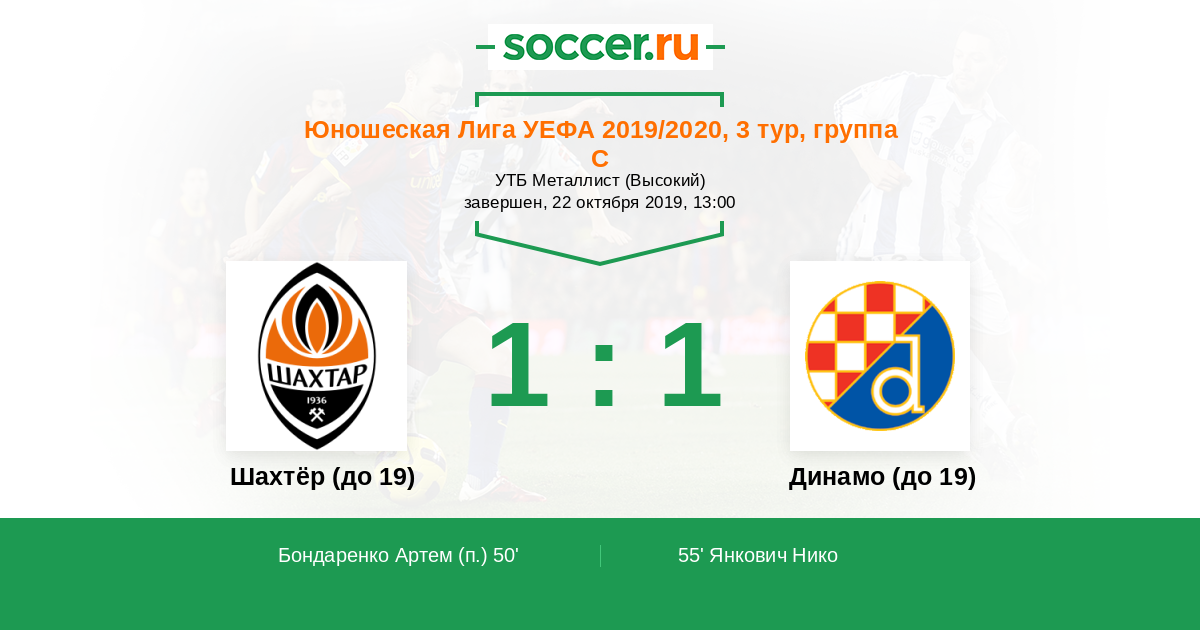 Протокол матча Шахтёр (до 19) против Динамо (до 19)