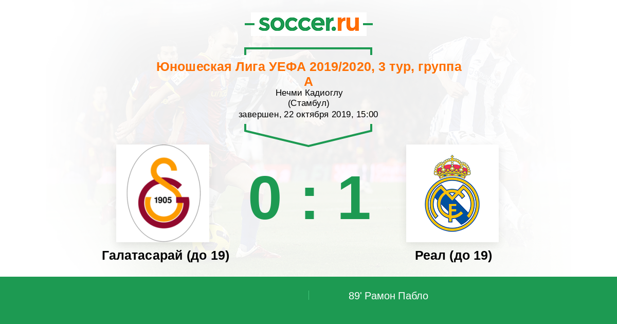 Протокол матча Галатасарай (до 19) против Реал (до 19)