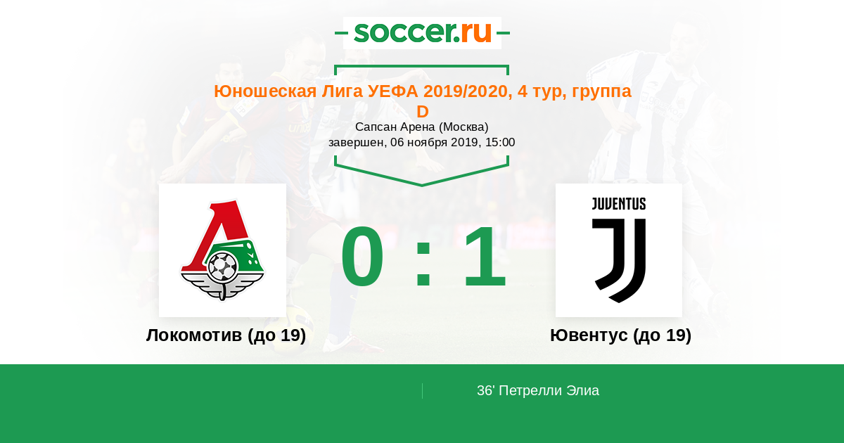 Протокол матча Локомотив (до 19) против Ювентус (до 19)