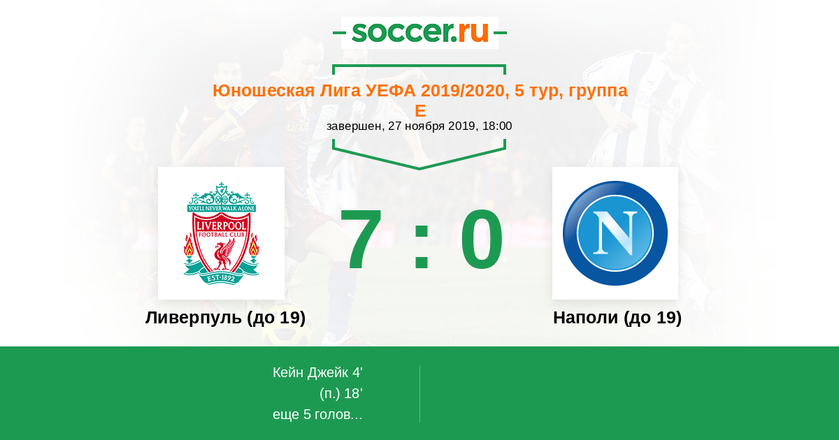 Протокол матча Ливерпуль (до 19) против Наполи (до 19)
