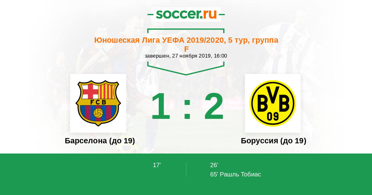 Протокол матча Барселона (до 19) против Боруссия (до 19)