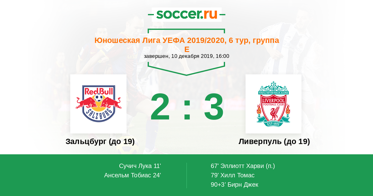 Протокол матча Зальцбург (до 19) против Ливерпуль (до 19)