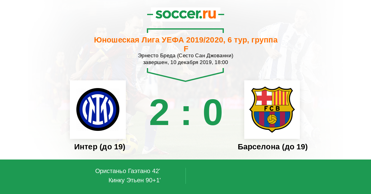 Протокол матча Интер (до 19) против Барселона (до 19)