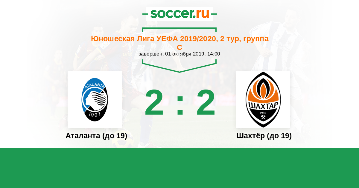 Протокол матча Аталанта (до 19) против Шахтёр (до 19)