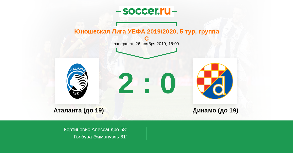 Протокол матча Аталанта (до 19) против Динамо (до 19)