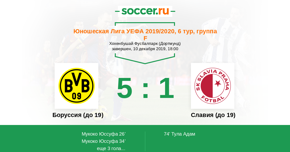 Протокол матча Боруссия (до 19) против Славия (до 19)