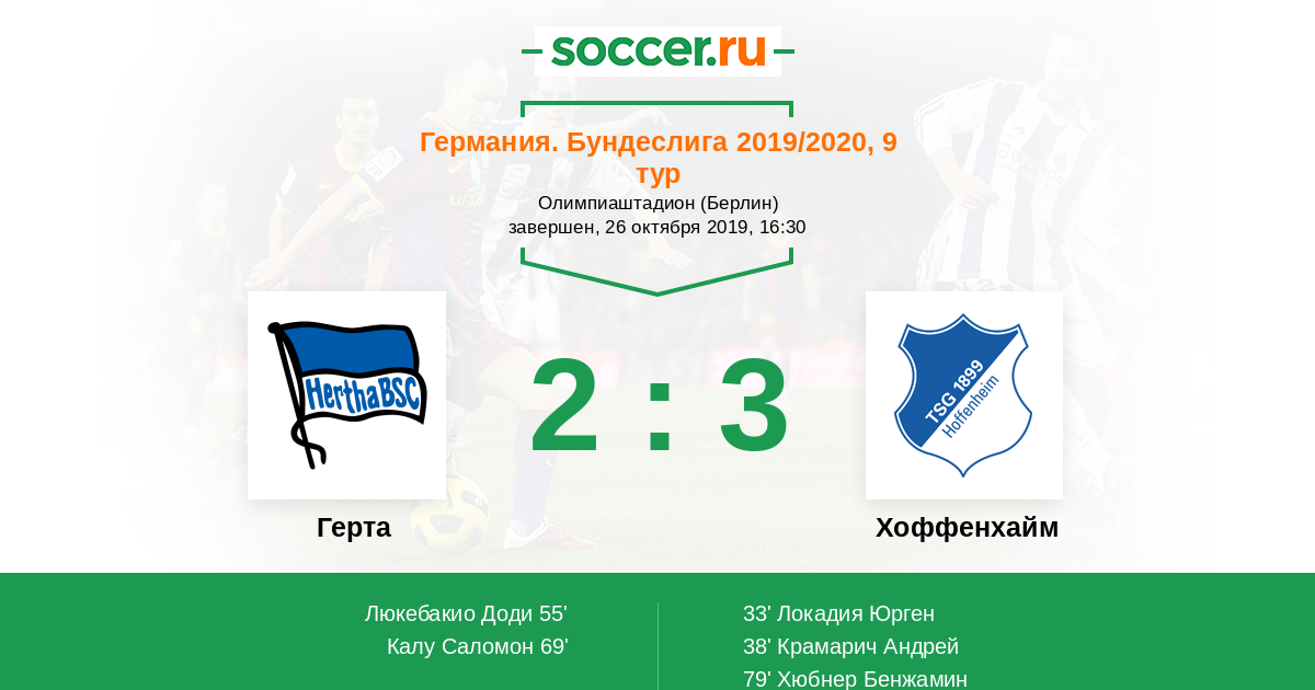 Протокол матча Герта против Хоффенхайм