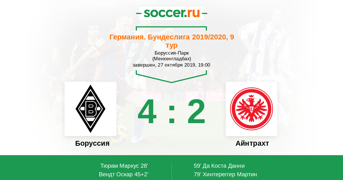 Протокол матча Боруссия против Айнтрахт