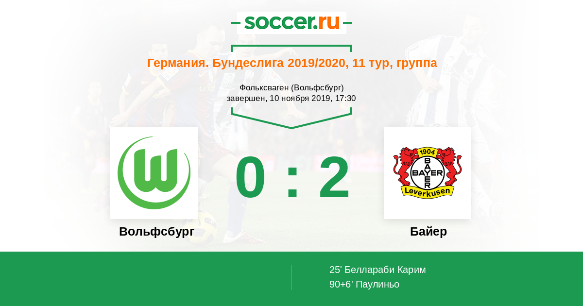 Протокол матча Вольфсбург против Байер