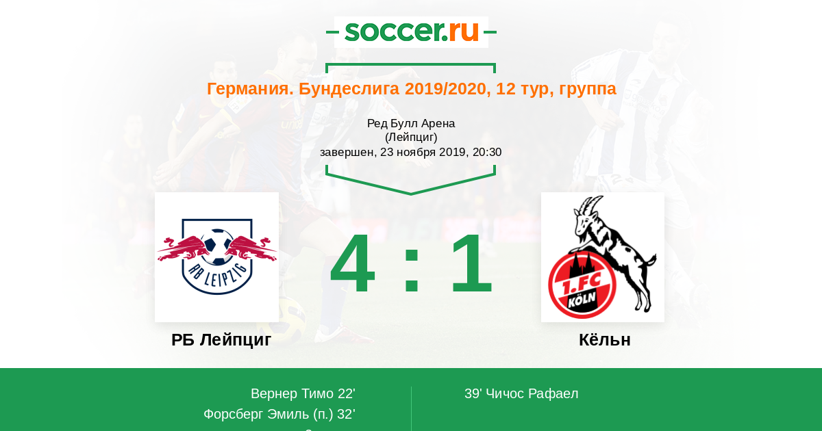 Протокол матча РБ Лейпциг против Кёльн