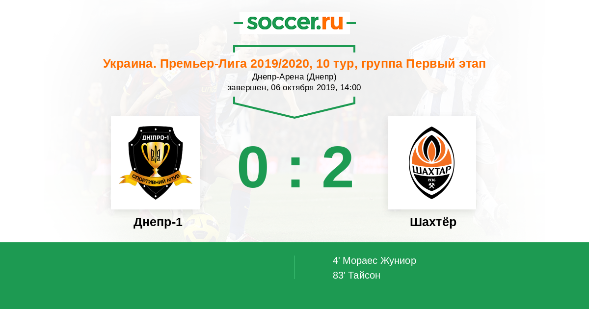 4' (0:1) Мораес Жуниор (10) (Степаненко Тарас (6))