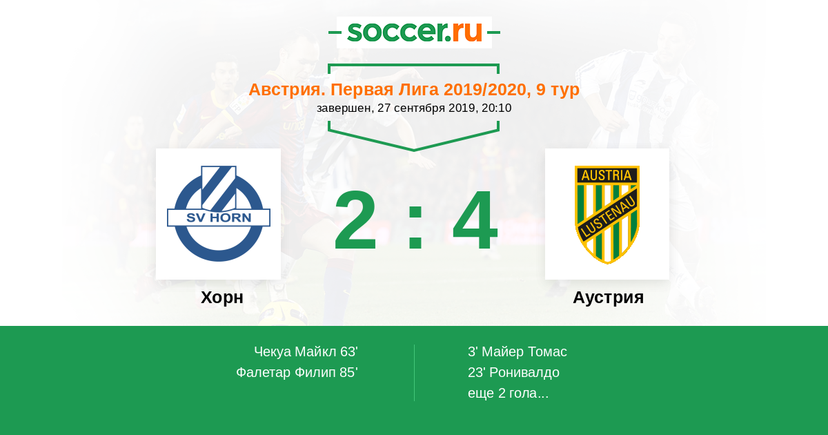 Протокол матча Хорн против Аустрия