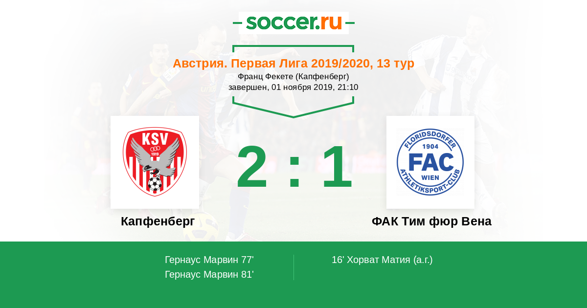 Протокол матча Капфенберг против ФАК Тим фюр Вена