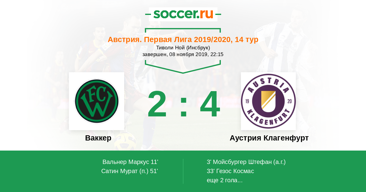 Протокол матча Ваккер против Аустрия Клагенфурт