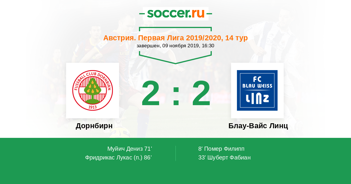 Протокол матча Дорнбирн против Блау-Вайс Линц
