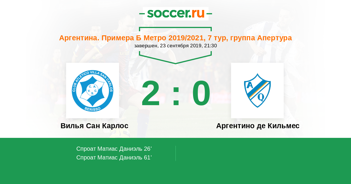 Протокол матча Вилья Сан Карлос против Аргентино де Кильмес