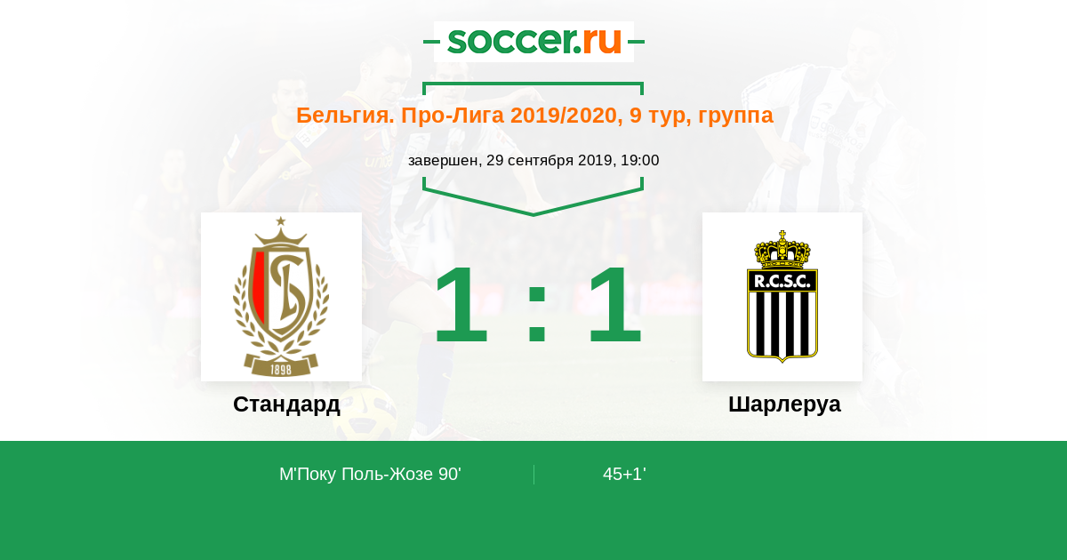 Протокол матча Стандард против Шарлеруа