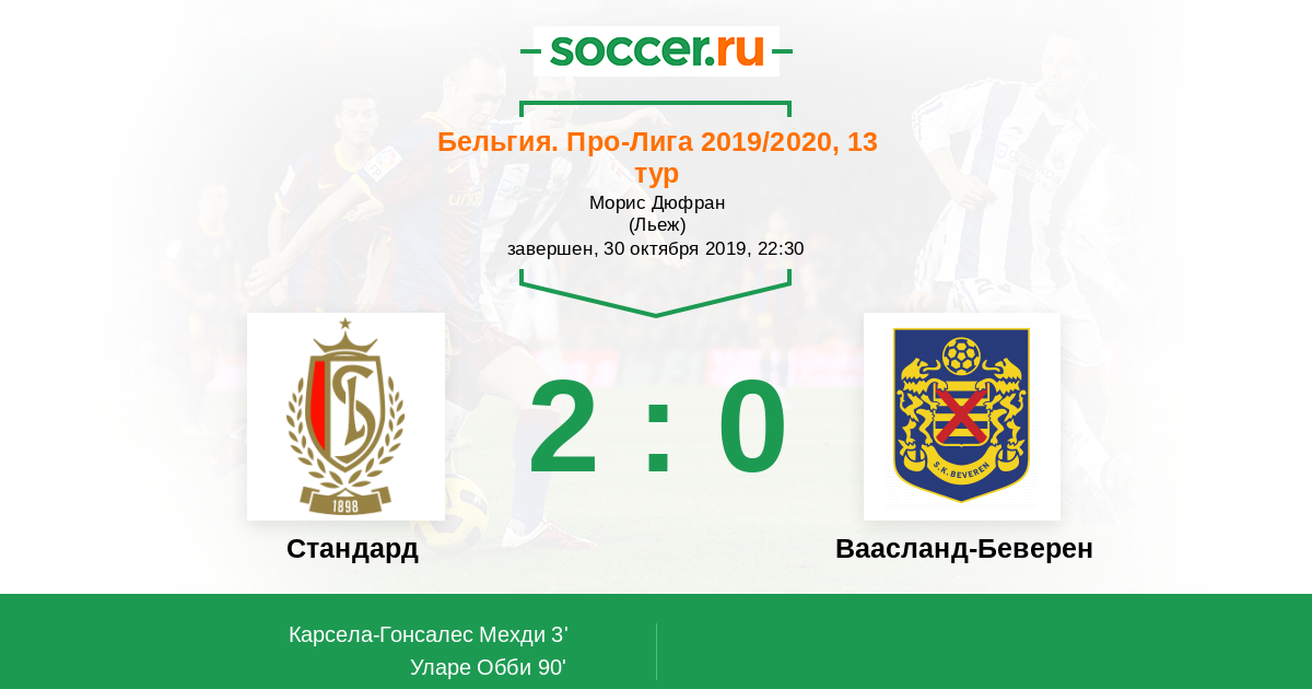 Протокол матча Стандард против Ваасланд-Беверен