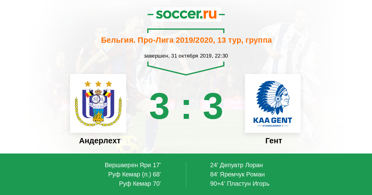 Протокол матча Андерлехт против Гент