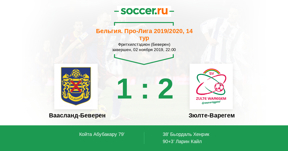 Протокол матча Ваасланд-Беверен против Зюлте-Варегем
