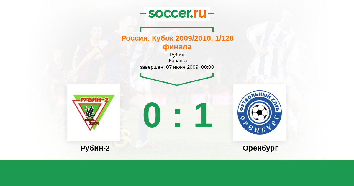 Россия. Вторая лига. Группа 4 05.08.2009 Рубин-2 Логотип футбольный клуб Рубин-2 (Казань) 0:2 Логотип футбольный клуб Газовик (Оренбург) Газовик